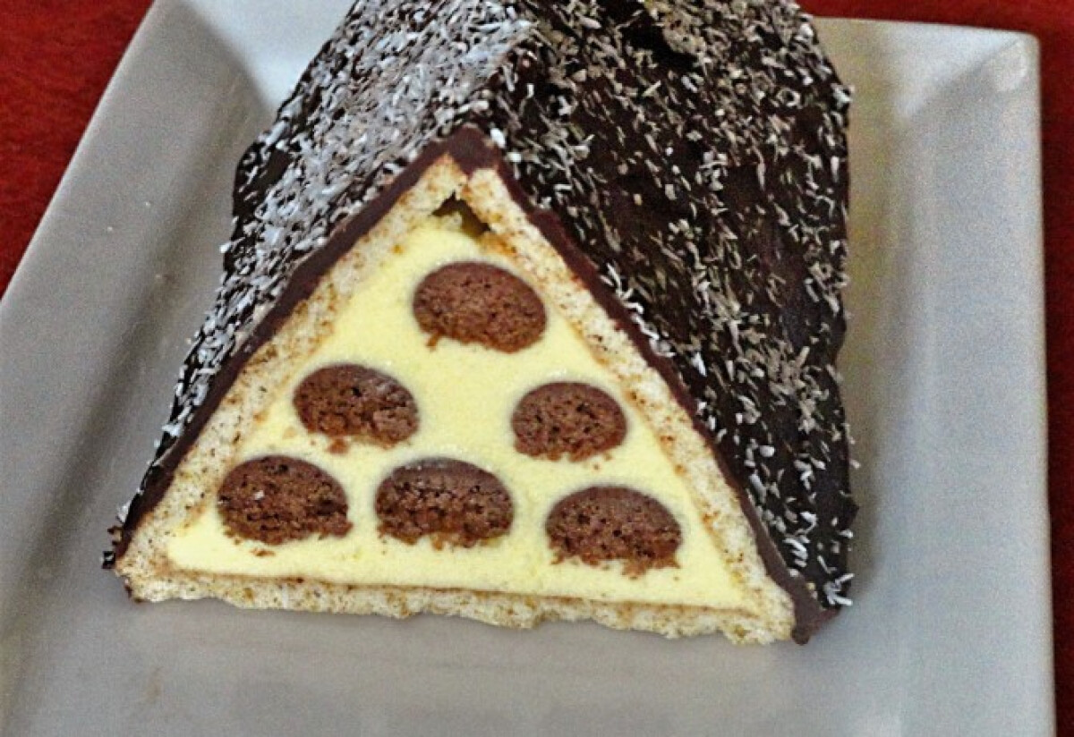 Másnap bevonjuk a csoki és tejszín összeolvasztott keverékével, majd megszórjuk kókuszreszelékkel.